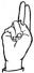 На ћирилици написано МИРОСЛАВ ЈОВАНЧЕВИЋ састоји се из 18 слова [?]. Исписано ћириличном једноручном азбуком за глувонеме: